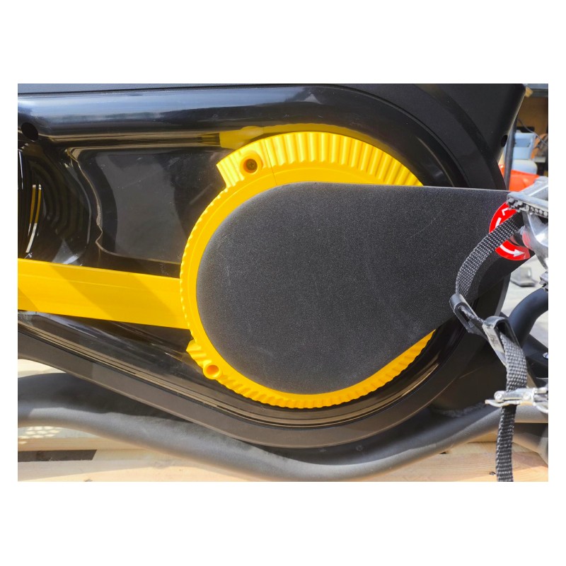 W odróżnieniu od innych urządzeń tego typu zastosowanie paska napędowego zamiast tradycyjnego łańcucha znacznie poprawia komfort ćwiczeń, nie wymaga smarowania oraz wydłuża żywotność całej konstrukcji.