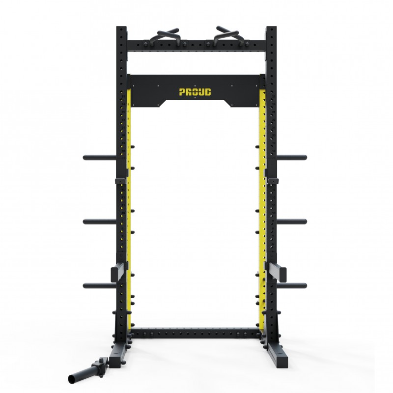 Skontaktuj sięKlatka half rack pozwalająca na trening ze sztangą bez dodatkowej asekuracji.