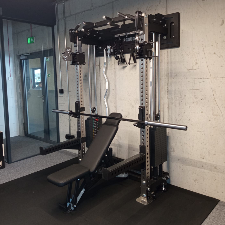 Stacja została wyposażona w dwa niezależne stosy po 90 kg oraz regulowany wyciąg, którego ustawienia można dostosować do różnorodnych ćwiczeń i poziomów zaawansowania. W połączeniu z wielopozycyjnym drążkiem do podciągania oraz zestawem uchwytów, brama treningowa Wall Rack PROUD umożliwia realizację kompleksowego treningu siłowego i funkcjonalnego przy zachowaniu kompaktowych wymiarów.