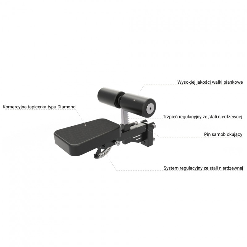 Zapewnia stabilną, powtarzalną pozycję treningową podczas pracy na wyciągu górnym i dolnym co przekłada się na lepszą kontrolę ruchu i większe bezpieczeństwo. To rozwiązanie wykorzystywane w treningu siłowym, funkcjonalnym i rehabilitacyjnym.