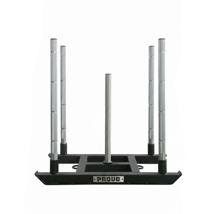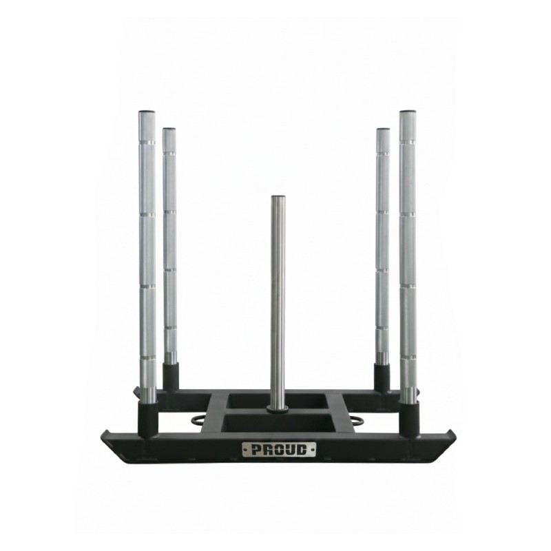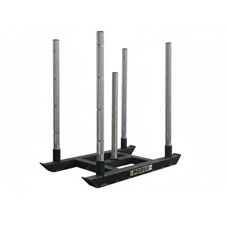 Sanki wyposażono w ergonomiczne uchwyty z radełkowaniem oraz oznaczeniami chwytu, co ułatwia zachowanie poprawnej techniki "na zmęczeniu". Uchwyty do liny po obu stronach umożliwiają trening sled pull w dowolnym kierunku. Wykończenie proszkowe, chromowane słupy i centralny trzpień ze stali nierdzewnej sprawiają, że sprzęt jest w pełni przystosowany do użytku komercyjnego – do klubów, studiów treningowych i przygotowań zawodniczych.