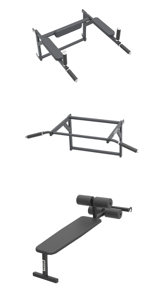 ŁAWKA DO ĆWICZEŃ PROUD CHAMPION w zależności od jej montażu może posłużyć jako ławka pozioma do treningu z hantlami i sztangą, a także jako ławka skośna np. do treningu mięśni brzucha. Ławka jest dwustronna - na obu końcach znajdują się specjalne haki montażowe. Dzięki idealnemu wyważeniu rozkładu sił jest stabilna i bezpieczna.