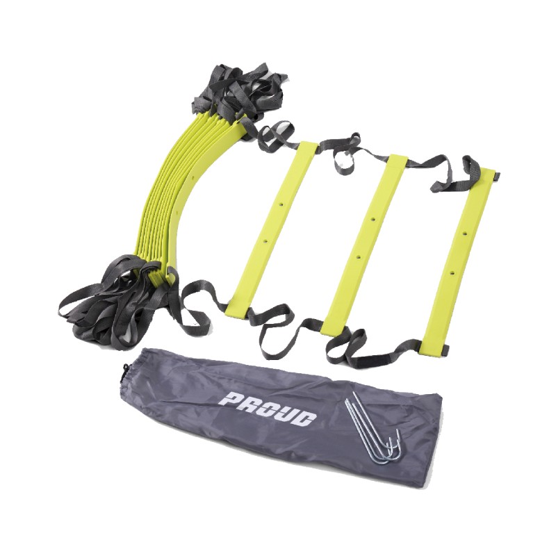Skontaktuj sięDRABINKA KOORDYNACYJNA TRENINGOWA AGILITY LADDER PROUD o długości 8 m to produkt niezwykle prosty, a zarazem bardzo funkcjonalny. Stworzony jest z lekkich poprzeczek PCV, które połączone są elastycznym i wytrzymałym materiałem. Głównym atutem są elementy antypoślizgowe, które ułatwiają pracę na każdym rodzaju powierzchni.
