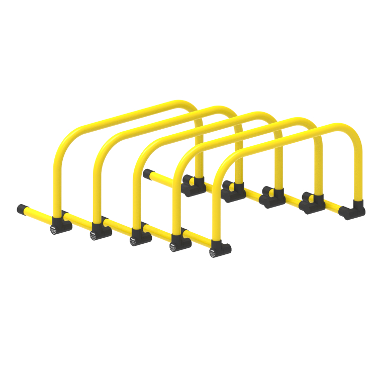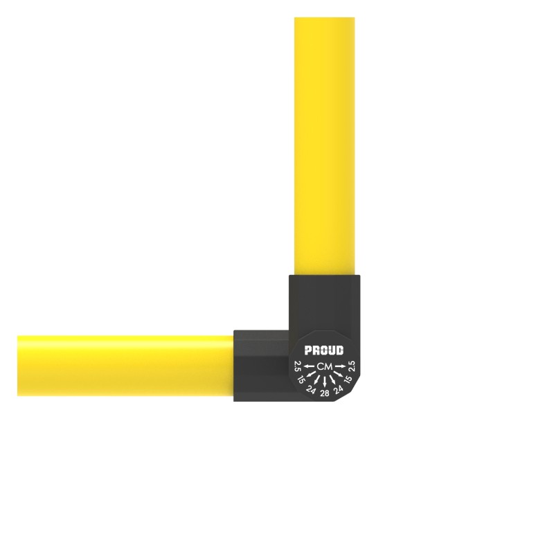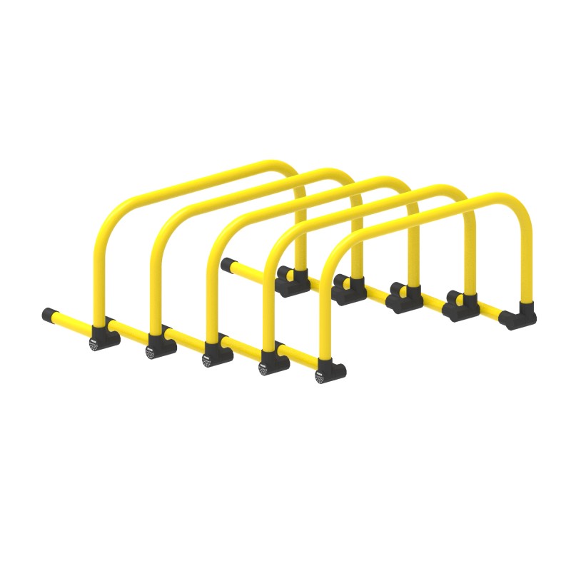 Prosta regulacja płotka w zakresie od 2,5 do 28 cm. Wykonany z tworzyw sztucznych - jest odporny na warunki atmosferyczne, co sprawia, że płotek sprawdzi się zarówno w treningu pod dachem, jak i w outdoorowym.